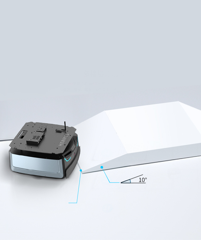 赫尔墨斯拥有10°越障爬坡能力,厚地毯上表现亦优秀。20mm高度的越障能力更是让赫尔墨斯胜任各大场景应用。