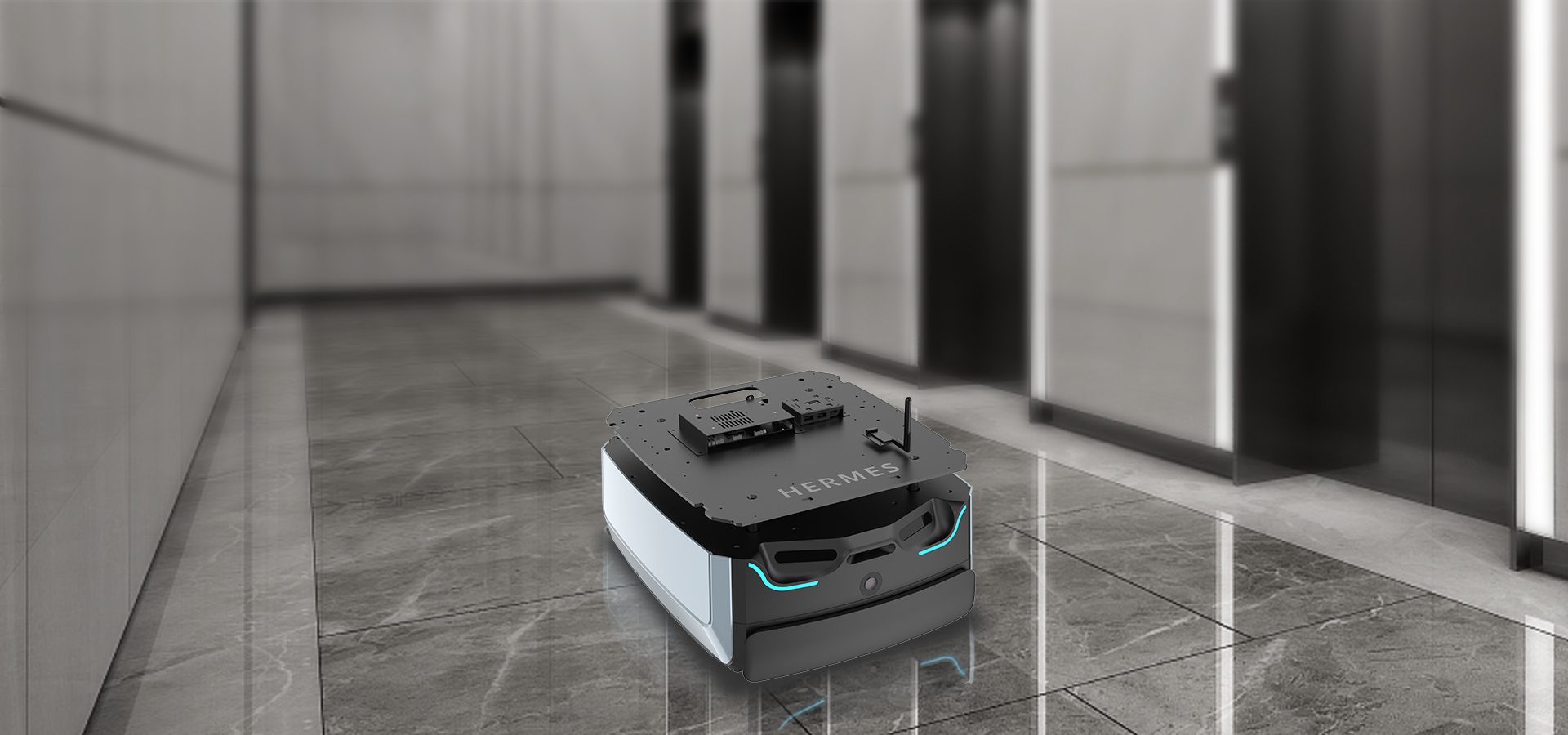 赫尔墨斯集成思岚智能梯控方案,支持市面上绝大多数电梯产品,能对电梯状态进行实时监控,支持多种电梯呼叫模式,实现机器人智能呼唤,自主搭乘,上下电梯。