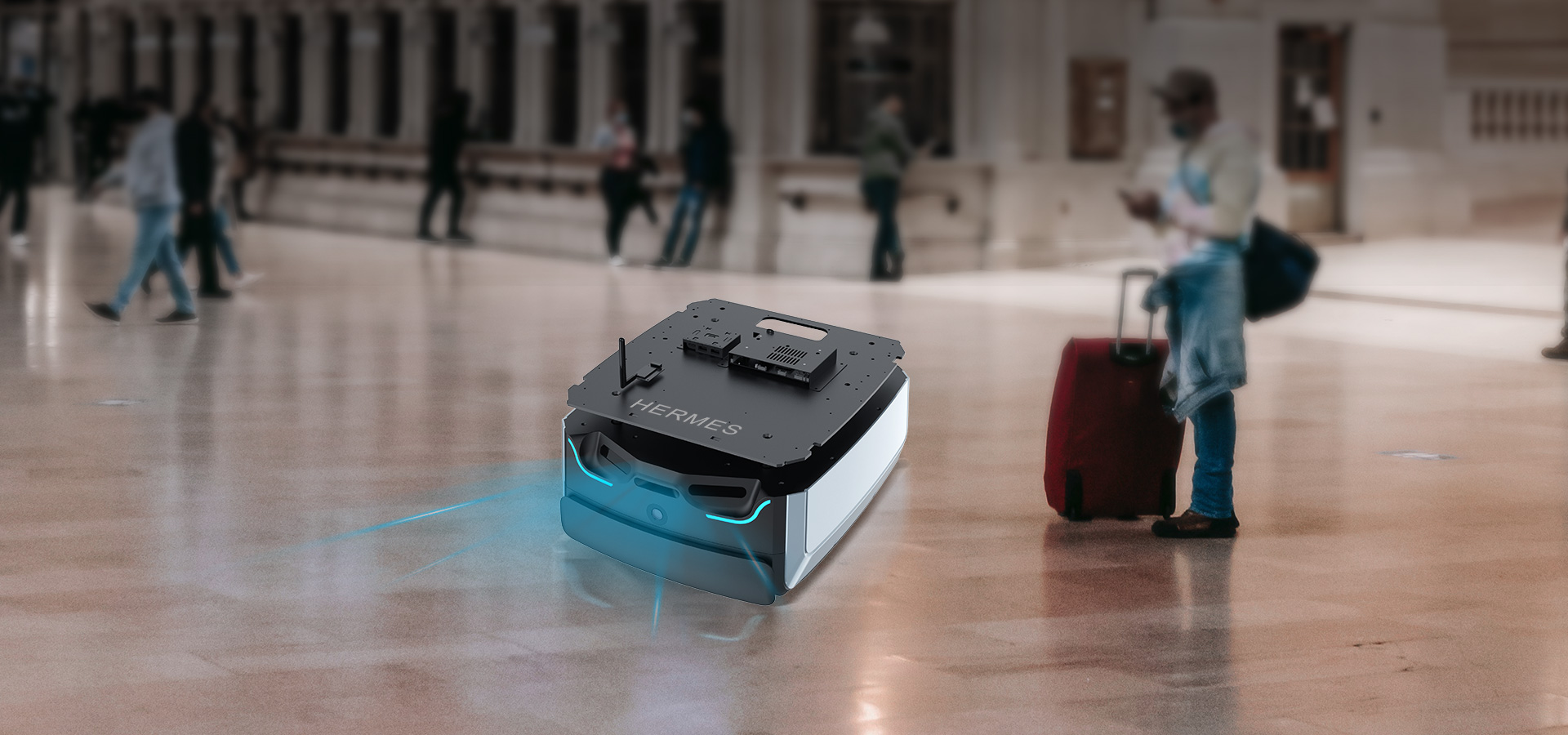 赫尔墨斯配置了双雷达和多个深度视觉传感器,以应对复杂、低矮障碍物识别,实现稳定可靠定位导航。
