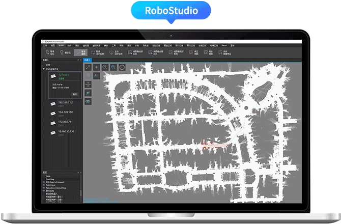 SLAMKit配套了可视化交互工具Robostudio,可以让客户实时监控机器人的运行状态并通过多样化的部署工具集成帮助客户加快部署时间。